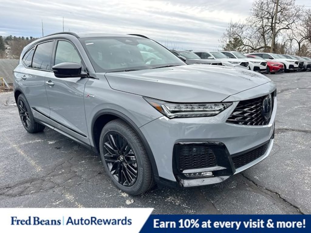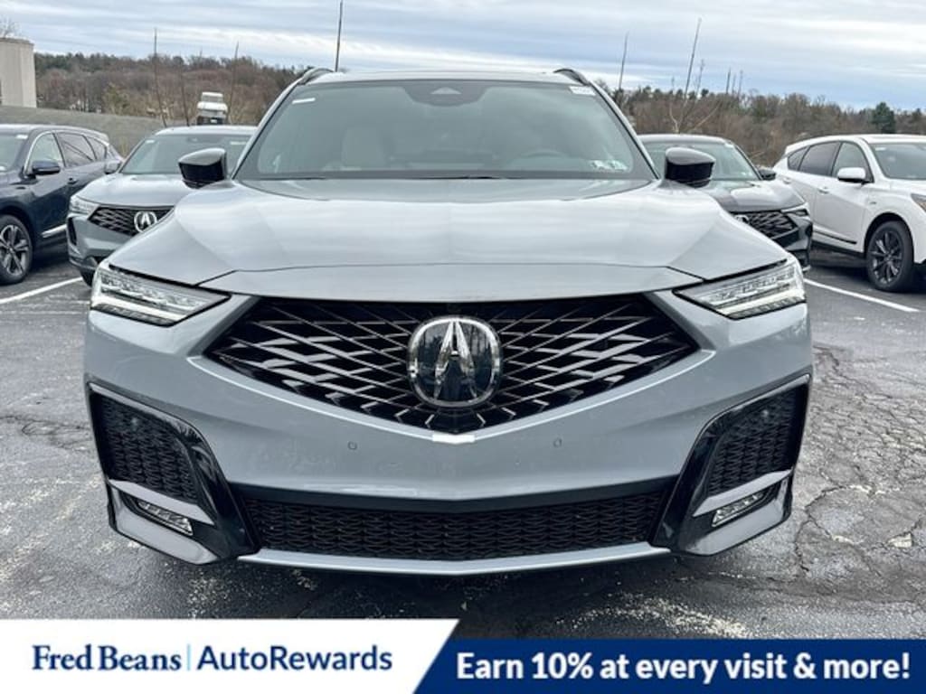 Modern Steel Metallic 2026 Acura MDX A-Spec Advance Package SH-AWD AWD 10-Speed Automatic 3.5L V6 SOHC i-VTEC 24V 19 Speakers, 3rd row seats: split-bench, 4-Wheel Disc Brakes, ABS brakes, Air Conditioning, Alloy wheels, AM/FM radio, Anti-whiplash front head restraints, Apple CarPlay/Android Auto, Audio memory, Auto High-beam Headlights, Auto tilt-away steering wheel, Auto-dimming Rear-View mirror, Automatic temperature control, Brake assist, Bumpers: body-color, Compass, Curvilinear Quilted Perforated Premium Milano Leather Seats, Delay-off headlights, Driver door bin, Driver vanity mirror, Dual front impact airbags, Dual front side impact airbags, Electronic Stability Control, Emergency communication system: AcuraLink, Exterior Parking Camera Rear, Four wheel independent suspension, Front anti-roll bar, Front Bucket Seats, Front Center Armrest, Front dual zone A/C, Front fog lights, Front reading lights, Fully automatic headlights, Garage door transmitter: HomeLink, Heads-Up Display, Heated and Ventilated Front Sport Seats, Heated door mirrors, Heated front seats, Heated rear seats, Heated steering wheel, HVAC memory, Illuminated entry, Knee airbag, Lane departure: Lane Keeping Assist System (LKAS) active, Leather steering wheel, Low tire pressure warning, Memory seat, Navigation system: Google built-in (3-Years Unlimited Data Plan for In-Vehicle Apps), Occupant sensing airbag, Outside temperature display, Overhead airbag, Overhead console, Panic alarm, Passenger door bin, Passenger vanity mirror, Power door mirrors, Power driver seat, Power Liftgate, Power moonroof, Power passenger seat, Power steering, Power windows, Premium audio system: Acura/ELS Studio 3D, Radio data system, Radio: Bang & Olufsen Premium Audio System, Rain sensing wipers, Rear air conditioning, Rear anti-roll bar, Rear reading lights, Rear seat center armrest, Rear window defroster, Rear window wiper, Remote keyless entry, Security system, Speed control, Speed-sensing steering, Speed-Sensitive Wipers, Split folding rear seat, Spoiler, Sport steering wheel, Steering wheel memory, Steering wheel mounted audio controls, Tachometer, Telescoping steering wheel, Tilt steering wheel, Traction control, Trip computer, Turn signal indicator mirrors, Variably intermittent wipers, Ventilated front seats, Wheels: 20" x 9J Aluminum Alloy.