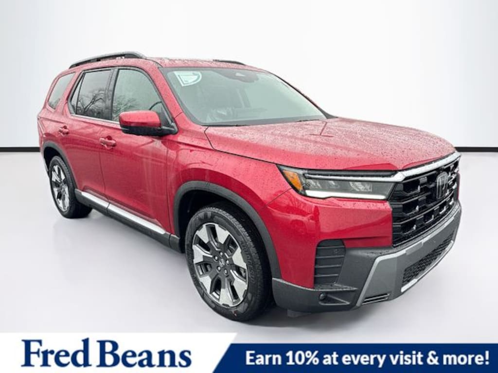 Red 2026 Honda Pilot Elite AWD 10-Speed Automatic 3.5L V6 DOHC 24V Price includes: Up to $500 dealer discount applied to MSRP or Fred Beans Price. Sale Price already reflects offer. Not cash back. See dealer.