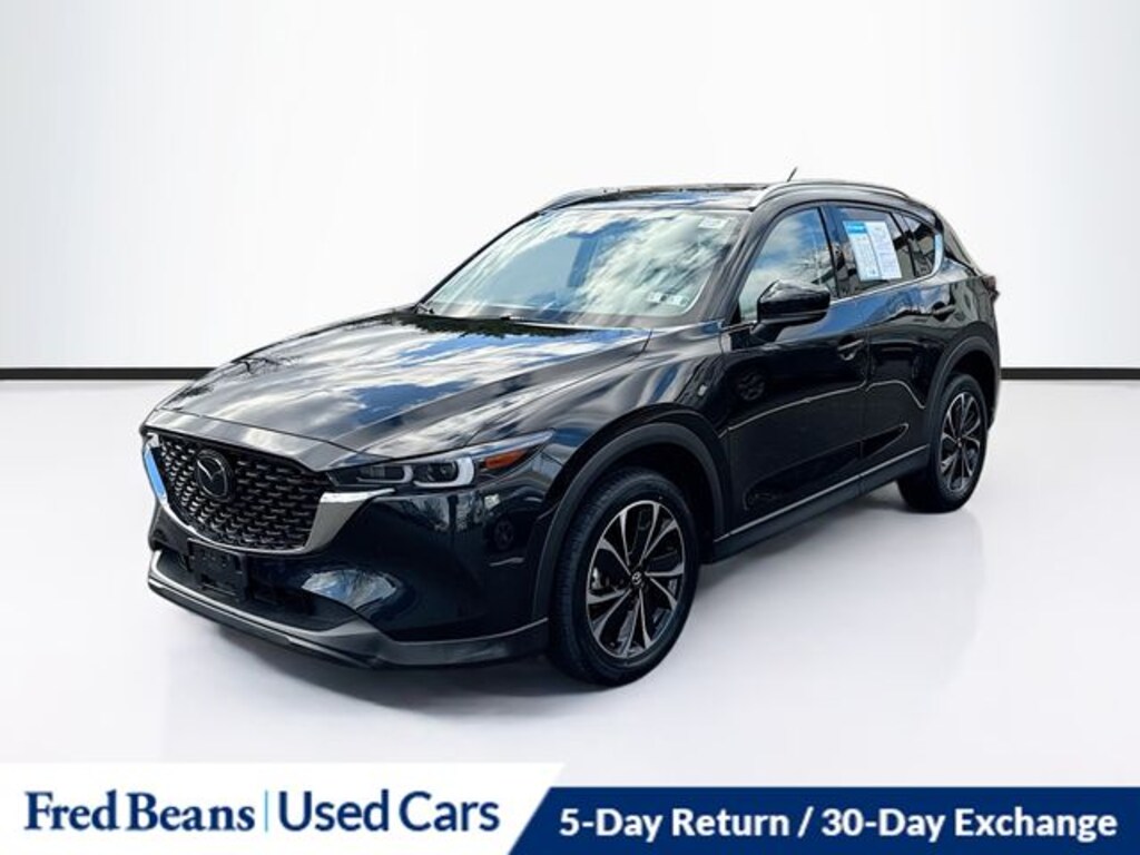 CARFAX One-Owner. Clean CARFAX. 24/30 City/Highway MPG 2022 Mazda CX-5 2.5 S Premium Plus Package SKYACTIV® 2.5L 4-Cylinder DOHC 16V 6-Speed Automatic AWD 4D Sport Utility Jet Black Mica For better peace of mind all our used vehicles have a 127-point inspection and come with a 5-day return, 30-day exchange (As-Is vehicles are excluded). Our exclusive Auto Rewards Program provides better value with Free First Oil change, Free Pa State Safety inspections, discounts for local merchants and more. Plus, you can earn up to $2000 towards your next vehicle just by servicing with Fred Beans! As Fred Beans always says, our used cars are better because our reputation depends on it.